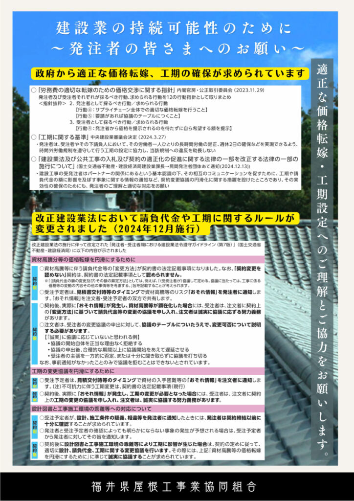 福井県屋根工事業協同組合のホームページをご覧頂きまして、誠にありがとうございます。